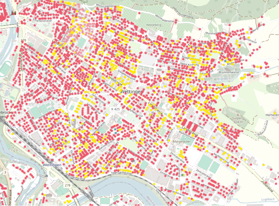 In some market areas in Switzerland, namely Ascona, Baden, Chiasso, Massagno, Morges, Pully, Siggenthal, and Wettingen, the private Swiss4Net Group is active and is connecting thousands of households with FTTH. Swisscom, for its part, does not want to surrender these rather urban areas to the competition without a fight and is therefore also connecting these locations. This inevitably leads to duplication, which is clearly visible on our FTTH map using the example of Wettingen (red: Swisscom and Swisscom/Swiss4Net available; yellow: only Swiss4Net available).